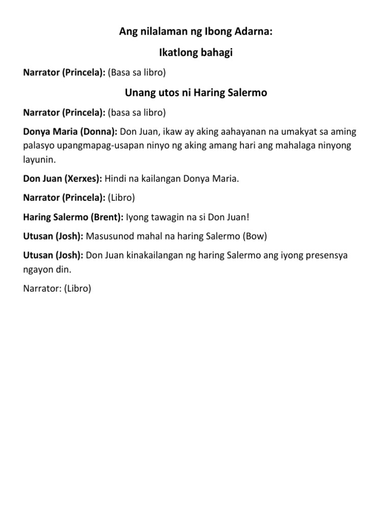 Ako Naman 5 Hangad Makatulong 6 Gantimpala ng Kabutihang Loob 7 Ang Karapat-dapat Ang Pagtataksil ng Magkapatid. The longer form of the storys title during the Spanish era was Korido at Buhay na Pinagdaanan ng Tatlong Prinsipeng Magkakapatid na anak ni Haring Fernando at ni Reyna Valeriana sa Kahariang Berbanya and is believed by some researchers to have been based on similar European. Ano ba ang layunin niya Buod.